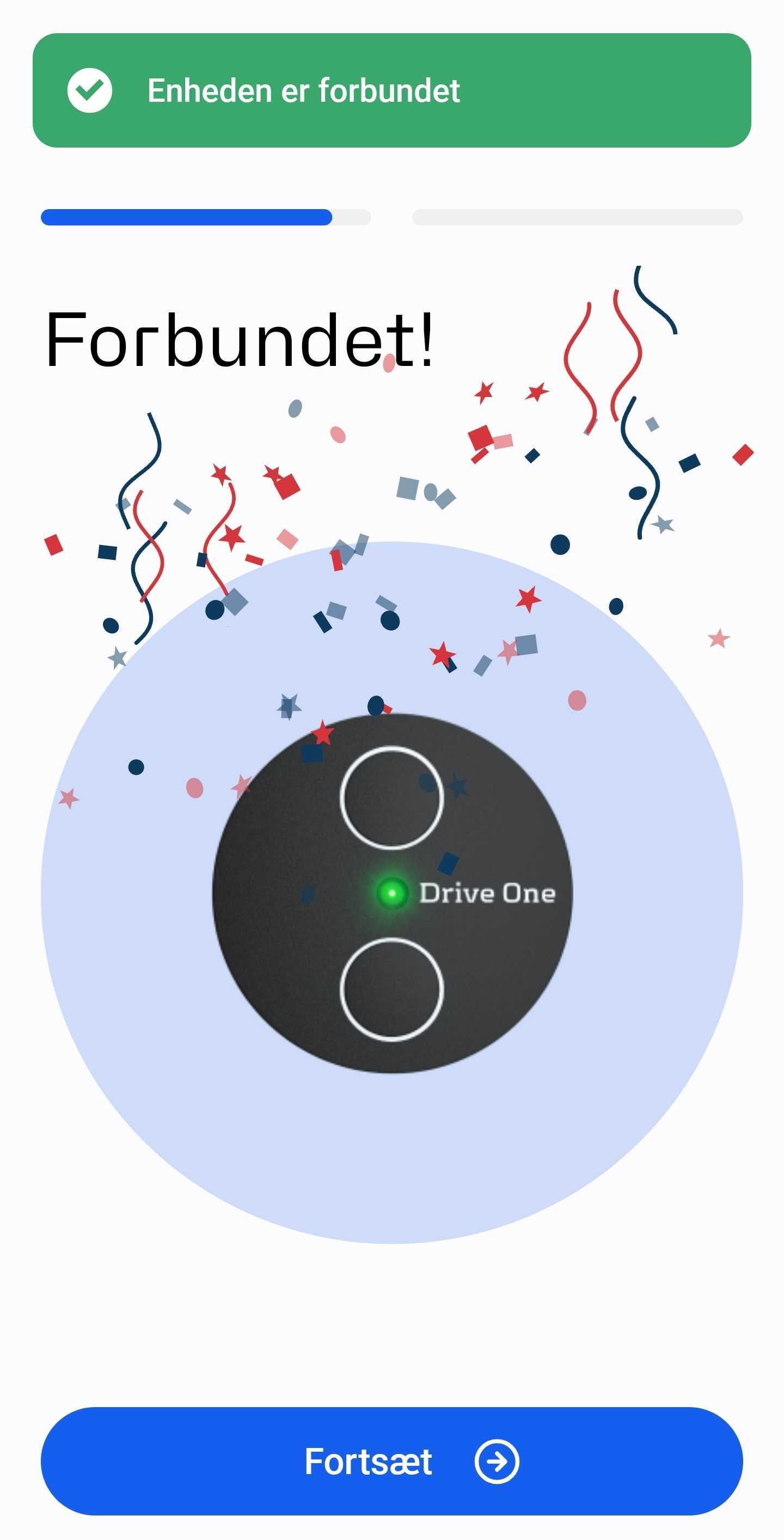 Din Drive One er nu forbundet til appen.